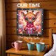 This adorable square wall clock features a heartwarming digital illustration of a baby giraffe wearing pink heart-shaped glasses and a cozy magenta turtleneck sweater. The giraffe is shown holding a beautifully wrapped pink and white plaid gift box with a large satin bow. The background is a whimsical, soft-focus room filled with Valentine decor, including hanging heart ornaments, plush pillows, and a glowing candle, creating a warm and festive atmosphere. The artwork is framed by a modern black wood-textured border with bold white numeric markers for easy timekeeping. This functional piece of home decor is a perfect gift for animal lovers, Valentine Day, or as a charming addition to a nursery or office. The rich, vibrant pink tones and sweet character design provide a cheerful and loving focal point for any interior space.