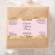 This elegant product label for cosmetic bottles features a pink background with faux gold foil borders. This label contains space for your product name, business name, product weight, ingredients, instructions, social media, and business address. This label measures 3.75 inches by 2 inches (95 mm by 51 mm) and is suitable for bottles with a diameter of 1.2 inches (31 mm) or more such as 2 to 4 oz (60 to 120 ml) bullet, cylinder, and boston round bottles. It can also be used for cosmetic jars and other types of cosmetics packaging.
