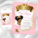 Baby shower de ballerine de princesse afro-américaine avec adorable fille afro-américaine d'origine portant un tutu rose mignon et perles avec jolie couronne rose et or sur un beau arrière - plan rose et or. Ces adorables invitations pour bébé rose et or sont facilement customisées pour votre événement en ajoutant simplement le texte de votre choix dans le style de police que vous préférez.