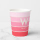 Pink Gradient Strip Monogram Persönliches Party Pappbecher
