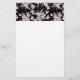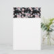Papier aus Stationery - der obere Rahmen mit elegantem Muster, der mit einer Aquarellbilderin aus rosa Blume mit blau-grauen Blätter und Stielen versehen ist.