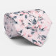 Eine Krawatte mit elegantem Muster, die mit einer Aquarellabbilderung von rosa Blume mit blauen grauen Blätter und Stielen versehen ist.