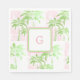 Pink Green Palm Tree Preppy Ombre Square Monogram Serviette