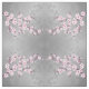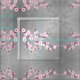 Hübsche rosa Kirschblütenmuster auf schimmerndem grauem Hintergrund. Die Blumenzweige der Sakura sind in geometrischen Formen angeordnet.