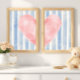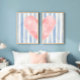 Elevate your space with these unique wall prints with a pink heart split in half against blue watercolor stripes. Perfect for infusing your preppy apartment, girl's bedroom or college dorm room with a fun girly vibes. This one-of-a-kind decor piece is a must-have for those seeking to add a pretty ambiance to their girly wall art collection.