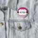 Perfektes Abzeichen für Ihre Girls in der Hühnernacht. Der Hintergrund des Abzeichens wird durch ein waagerechtes schwarzes Band in zwei Hälften geteilt. Die obere Hälfte ist schlicht dunkelrosa, während die untere Hälfte einen rosa Glitzer-Effekt hat. Im Hintergrund ist eine weiße Quarrefolie gerahmt in Schwarz mit Vorlagen, um Ihre Details in rosa und schwarz Schrift hinzufügen.