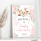 Superbe pays d'hiver en or rose avec des animaux de la forêt : renard, lapin et cerf baby girl shower affiche de bienvenue.