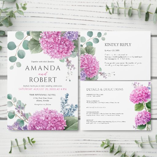 Pink Hydrangea Watercolor Flowers Wedding ThemeDesignt von Jim Carnicelli