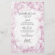 Customisez l'élégant menu Mariage Pale Rose Hydrangea Fleurs d'aquarelle avec les détails du repas que vous pourrez servir à votre jardin fête inspiro thème déjeuner de douche nuptiale, fête de fiançailles, brunch mariage, dîner de répétition ou réception en ajoutant la salade ou le premier plat, entrée ou deuxième plat et dessert ou troisième plat. Personnalisez-le avec les noms de la mariée et du marié, le lieu de l'événement et la date de la cérémonie de mariage. Ce menu mariage à fleurs personnalisé classe présente une photo florale peinte en aquarelle numériquement des pétales de fleurs d'hortensia rose clair ornant les coins d'un arrière - plan blanc.