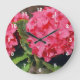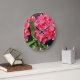 Das Originalfoto von MaeFlowers auf dieser Wall Clock ist eine Nahe von rosa Hydrangeas und ihren gezackten spitzen, federgrünen Blätter. Das zentrale Pompom der Blütenblätter füllt fast das Foto, umgeben von grünen Blätter und einer weiteren Blume auf der Seite. Die Uhr hat weiße Zahlen, diese können aber gelöscht werden, wenn Sie es vorziehen.