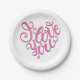 Ein extravaganter Schriftart pink ich Liebe du Design. Dieses Design wirkt auf diese Paper-Teller sehr effektiv