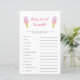 Niedliches Eis-Thema Mädchen Baby-Dusche Baby Wort Rührei-Karte mit Aquarell Abbildung von Rosa und lila Eis auf einem Waffelkegel. Die Wortliste auf dieser Karte bezieht sich alle auf Babys und sie werden verdreht. Die Gäste werden konkurrieren, die sie alle zuerst auspressen können! ANTASTATUR: 1. Kindersitz 2. Milch 3. Laufgitter 4. Schnuller 5. Diaper 6. Schaukelstuhl 7. Kinderzimmer 8. Babymonitor 9. Sattel 10. Formel 11. Gummiklemme 12. Rolle.