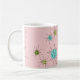Dieses rosa Muster der Tasse der atomaren Sternexplosionen der Atomischen weist die ikonischen atomaren Sternexplosionen auf. Das ist richtig! Die alte Schule, First Lady Pink farbener Hintergrund mit goldenen Fesseln ist der perfekte Hintergrund für die lebendigen türkisfarbenen, beruhigenden Sellerie und kitschigen Birnen grünen Kreise. Die Farbflecken sind sporadisch in verschiedenen Größen platziert, mit überlegenen schwarz-V-förmigen Linien, um die Mod-Sputnik-Sternexplosionen zu bilden. Dieses Retro-inspirierte Design, das nach einem Schüssel-Muster aus den 50er Jahren gestaltet wurde, bietet alles, was man braucht, um wirklich modern zu sein.