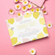 Modernes Zitronendesign in hellen Gelbtönen und Rosa. Diese Einladungen können mit Ihrem Text personalisiert werden und würden gut für Geburtstage oder Party im Sommer funktionieren.