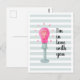 Valentinstag Postkarte mit Glühbirne und Streifen Illustration, und Text "Ich bin in Liebe mit Ihnen". Pastellminze und rosa Farben.