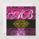 PINK LILA BLACK DAMASK MONOGRAMM, weiß Einladung