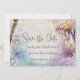 Magische Elegant Rustikale Mason Jar Hütte Chic Save the Date. Geheimtipp Bezauberter Waldgarten Rosa Lila Pastellblau verzauberte magische romantische Lichter mit Heiterkeit retten das Datum Einladungen. Ideal für das Bohemische Hochzeitsthema Messe Boho.