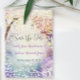 Magische Elegant Rustikale Mason Jar Hütte Chic Save the Date. Geheimtipp Bezauberter Waldgarten Rosa Lila Pastellblau verzauberte magische romantische Lichter mit Heiterkeit retten das Datum Einladungen. Ideal für das Bohemische Hochzeitsthema Messe Boho.