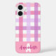 Pink Lila Pastell Gingham Pattern Monogram iPhone 16 Hülle