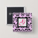 PINK LILAC BLACK DAMASK WHITE SQUARE MONOGRAMM BUTTON