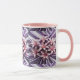 Diese rosa Combo-Tasse zeichnet sich durch ein digitales Kunstbild von sieben rosa Lilien in kreisförmigem Muster auf metallischem Lavendel- und Silberhintergrund aus. Das Bild ist auf der Tasse gekachelt. Die rosa Lilien sind in einem sanften, ätherischen Stil mit glänzenden Blütenblättern, die perlenartig sind, gehalten. Der Hintergrund hat dramatische Radiationslinien, die einen Sternexplosion-Effekt erzeugen, wobei sich lila im Zentrum ein leichter Lavendel- und Silberton bildet. Die Tasse ist eine Combo-Tasse. Die Tasse ist mit Mikrowelle und Geschirrspüler ausgestattet. Die Tasse besteht aus starker Keramik. Die rosafarbene Tasse erfüllt die FDA-Anforderungen für die Lebensmittel- und Getränkehaftigkeit. Diese Tasse wäre gut für den Lily Day am 20. Oktober.