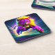 Dieser Untersetzer hat einen rosa Löwen darauf.