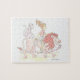 Eine farbenfrohe und rosa Abbildung eines kleinen Mädchens auf einem rosa Löwen, mit Freunden Pink Monkey und Pink Snake.