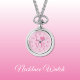 Collier Montre cadeau. Avec le mot "amour" et une forme de coeur remplaçant la lettre O. rose foncé et rose clair.