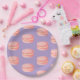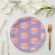 Sweet and delectable pink macarons elegantly displayed against a vibrant purple background.