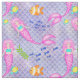 Ein sehr niedliches Meerjungflocken mit zauberhaften kleinen Meerjungfrauen mit rosa Haaren und rosa Skalen, das Schwimmen unter dem Ozean mit Fischschwärmen, Orange und Weiß gestreiften Clownfischen, kleinen gelben und blauen Fischen und schwimmenden Algen. Alle auf einem pastellfarbenen lila/blauen Hintergrund der Fischwaagen.