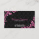 Elegante rosa Wirbel mit Blumenmuster über schwarzen Blumendüstern, Visitenkartenvorlage. Für Veranstaltungsdesigner, Hochzeitsplaner