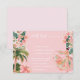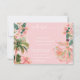 This destination wedding response card features painted artwork of a Mexican folk dancer surrounded by tropical flowers. All the important wedding details can be personalized. Colors include green, pink, white and coral.
