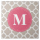 Chic, trendig, mädchenhaft, marokkanisch Gitterquartfolienmuster in einem Leinengrau und Weiß mit einem rosa geometrischen Rahmen für das Kreissymbol mit Monogram-Vorlage.