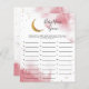 Niedlich über das Moon Thema Babydusche "Babyname" Spielkarte mit Aquarell in Rosa mit Imitaten goldenen Mond und Sternen. Die Texte sind bearbeitbar. Perfektes Spiel während der Dusche. Es frage den Gästen, Babynamen aufzuschreiben, die mit jedem Alphabet beginnen. Wer zuerst alle Alphabete beendet, gewinnt!