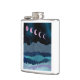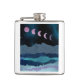 Diese wunderschöne abstrakte Landschaft zeigt eine nächtliche Bergszene mit einem kühnen rosa Mond, der in Phasen über dem Himmel gezeigt wird. Das Design ist in Blau, Zyan, Rosa und Grautönen gehalten.