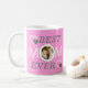 Pink Mothers Day Keepake Kaffee Tasse mit Best Mama Jeden Text und Foto. Diese Tasse kann leicht personalisiert werden, indem man ein eigenes niedliches Mutter-Tochter-Bild in die Designvorlage einfügt, sodass man für eine besondere Mama ein besonderes Geschenk machen kann.