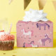 Niedliche, rosa, lila und weiße Pferde werden zu einem Muster gemacht, um die perfekte Geschenkverpackung für Mädchen und Pferdefreunde zu machen.