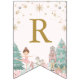 This pastel Nutcracker ballet birthday bunting flag sets the tone for your girl winter wonderland theme birthday celebration. The ODILE Collection has a soft pink background with Nutcracker ballet faves from the Sugar Plum Fairy, the Nutcracker in pastel pink, a rocking horse toy, Christmas tree, wrapped gifts, ballet point shoes, pink poinsettias, and soft mint green winter greenery. Serif font in gold spells out HAPPY BIRTHDAY.