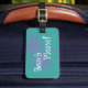 Bring mich bitte zum Strand! Aquamarine Gepäckmarke mit rosa Palme. Perfekte Gepäckmarke für den lang erwarteten Urlaub. Text kann angepasst werden.