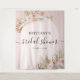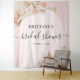 Elegante böhmische Tapisserie mit rosafarbenem Hintergrund mit Blumenbogen, wasserfarbenen Blätter aus getrockneten Palmen, Pampas-Gras und einer modernen Textvorlage, die leicht zu personalisieren ist.