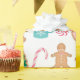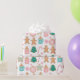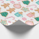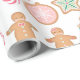 Dieses Verpackungspapier zeichnet sich durch ein Muster dekorierter Lebkuchenkochen auf einem hellen, weißen Hintergrund aus.