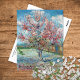 Eine kunstvolle Postkarte mit dem postimpressionistischen Gemälde, Pink Peach Trees, auch bekannt als, In Erinnerung an Mauve (1888) von dem niederländischen Künstler Vincent Van Gogh (1853-1890). Ein Obstbaum mit rosa Blüten an einem sonnigen Frühlingstag mit blauem Himmel.