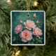 Pink Peonies Artwork on Emerald Green Keramikornament