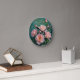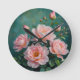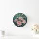 Pink Peonies Artwork on Emerald Green Runde Wanduhr
