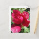 Eine einfache leere Postkarte für jeden Anlass, vielleicht ein freundliches Hallo. Das ist ein Foto, das ich von einer schönen, dunkelrosa Blume in meinem Garten gemacht habe.