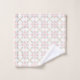 Pink petal and pastel triangle tile pattern on whi badhandtuch set