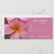 Diese individuell anpassbare Massage oder Wellness-Center Geschenkgutscheine Vorlage hat ein nahes up Foto einer rosa plumeria Blüte, eine duftende tropische hawaiianische Blume oft in einem Lei gefunden. Diese Blüte nennt man auch frangipani. Die Vorderseite hat Platz für Ihren Namen, den Firmennamen, die Lizenznummer des Massagetherapeuten und die Kontaktdaten. Der Rücken hat Platz für den Schenker und Empfänger, Ablaufdatum, autorisierte Unterschrift und Nummer des Geschenkgutscheins. Sie können das bis zum Kaufdatum ändern. Ändern Sie eines der Wörter in der Vorlage. Klicken Sie auf Anpassen, um den Stil oder die Farbe des Schriftartes zu ändern oder um weitere Änderungen vorzunehmen. Dieses Design ist auch auf anderen Produkten erhältlich, einschließlich passender Visitenkarten. Schauen Sie in den Abschnitt Blume und Natur von Alinas Stift.