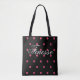 Machen Sie eine Aussage mit diesem rosa polka dot schwarzen Hintergrund tote Tasche entworfen von Sarah's Delights.