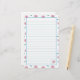 Ein weiches und hübsches Schreibpapier, das mit kleinen blauen Blüten und rosa, rosafarbenen Blume geschmückt ist, die mit Tinte gezeichnet und in Aquarellfarben gestrichen wurden.
