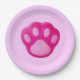 Set von acht 9" Papier Teller mit einem Bild eines hellrosa Welpenpaws mit weichen rosa Pads auf rosa. Entsprechende Espressotasse, Krug, Teekanne und Untersetzer auf Papier. Sehen Sie sich die gesamte Kids' Corner Plate Kollektion im NAHRUNGSMITTEL/BEV an. | Abschnitt Geschirr.